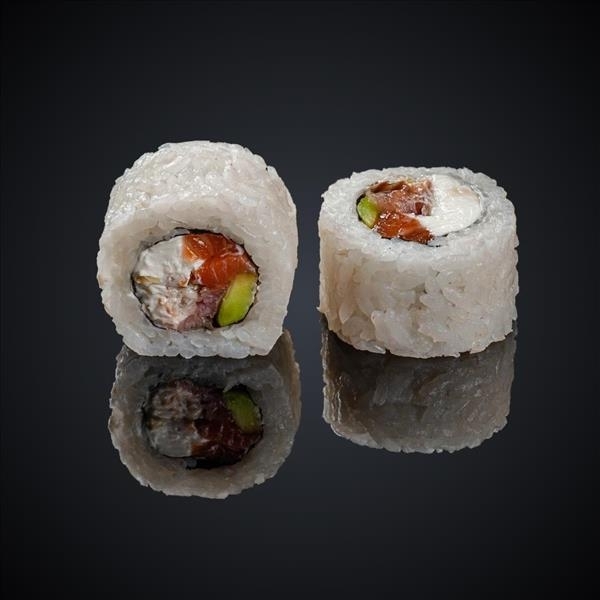 Состав: лосось, авокадо, сыр “Cremette”, нори, рис .