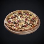 Состав: соус томатный, сыр моцарелла, куриное филе, ветчина индейки, помидоры, лук красный, маслины, перец болгарский, перец халапеньо.