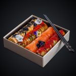 Состав: лосось, тунец, угорь, авокадо, сыр “Cremette”, нори, рис.