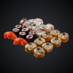 Состав: лосось, тунец, угорь, авокадо, сыр “Cremette”, нори, рис.