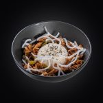 Креветки, бекон, соус «Унаги», кунжут, соус «Сливочный».