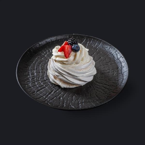 нежное хрустящее безе с воздушным сливочным кремом, ягодной нотой клубничного варенья и свежими ломтиками клубники