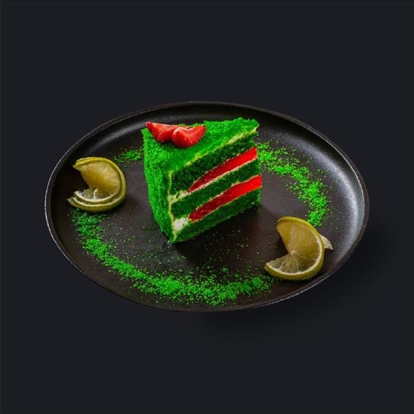 освежающий мятно-шпинатный бисквит с яркой кислинкой клубничного компоте и нежным сырно-творожным кремом