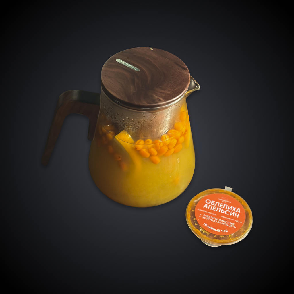 Состав: облепиха, апельсин, сахарный сироп, корица, чай «Ассам»