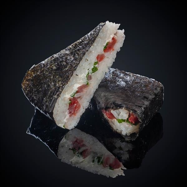 Состав: тунец, лук зелёный, сыр «Cremette», нори, рис. *Изображение носит демонстрационный характер. Онигири подаётся не в разрезанном виде.