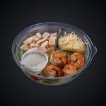 Состав: соус сливочный, куриное филе, моцарелла, пармезан, черри, айсбер, соус Цезарь