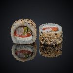 Состав: копченая курица, огурец, авокадо, тамаго, ананас, помидоры черри, кукуруза, соус «Унаги», соус «Гавайский», кунжут, рис.