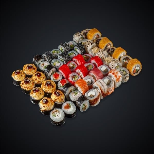 Состав: Калифорния с лососем — 1, Калифорния с креветкой — 1, Тори Цезарь — 1, Окинава — 1, Средиземноморский — 1, С угрем и лососем — 1, Фудзияма — 1