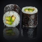 Состав: лосось, угорь, креветка, тунец, сыр «Cremette», манго, огурец, авокадо, икра масаго, соус «Унаги», соус «Спайси», нори, рис.