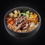 Лосось, авокадо, сыр “Cremette”, сыр “Моцарелла”, соус “Спайси”, соус “Унаги”, кунжут, нори, рис.